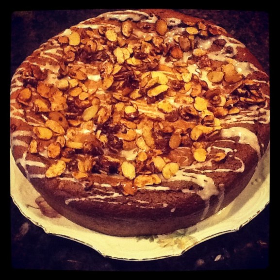 Dad actually liked this lime and ground almond version even better than the straightforward clementine/almond meal one you made. The ground almonds, which were not as fine as the meal, added a little more texture and “body” to the cake. I toasted slivered almonds in a little butter and sugar and sprinkled them on top which also added a nice touch. Dad thought he was eating coffee cake.