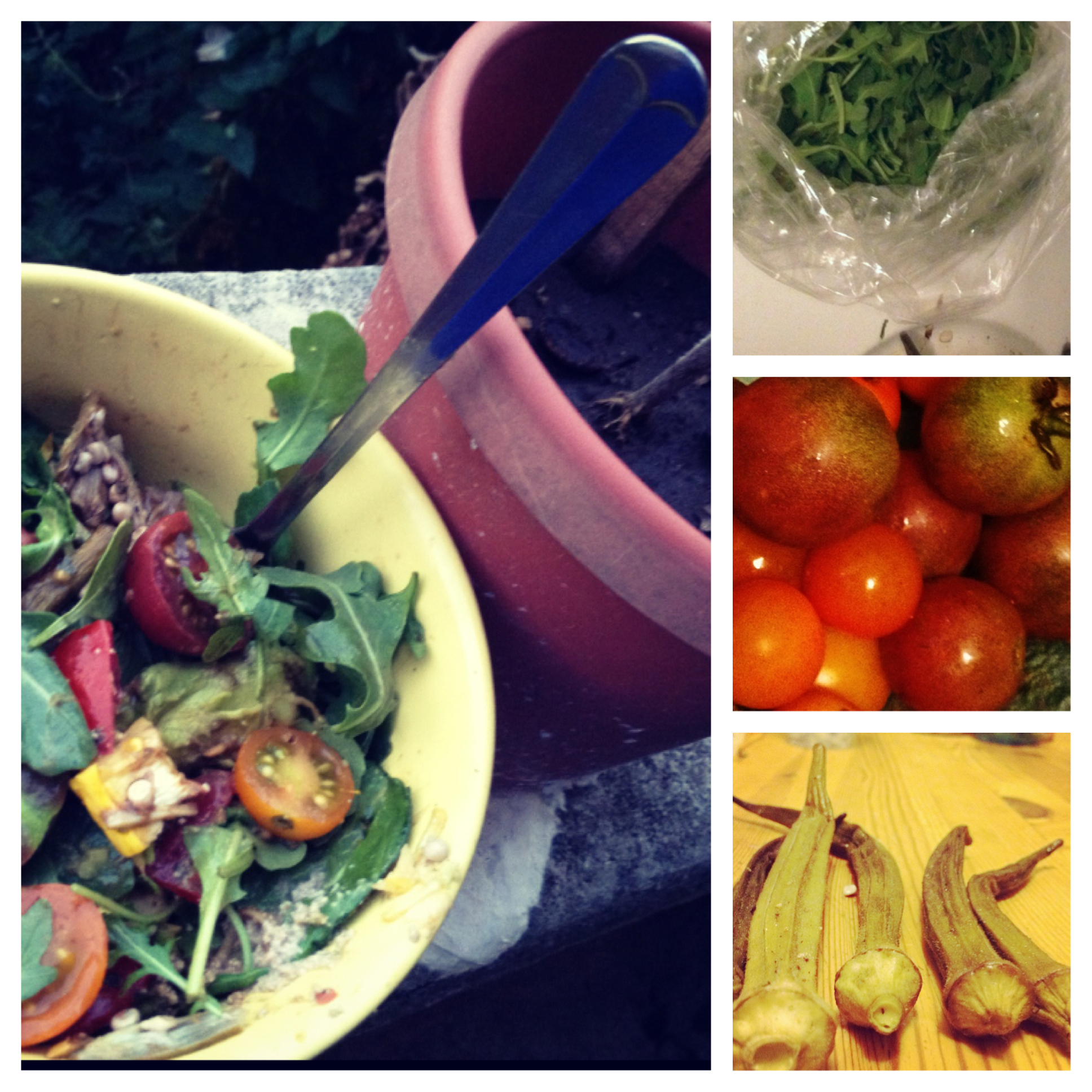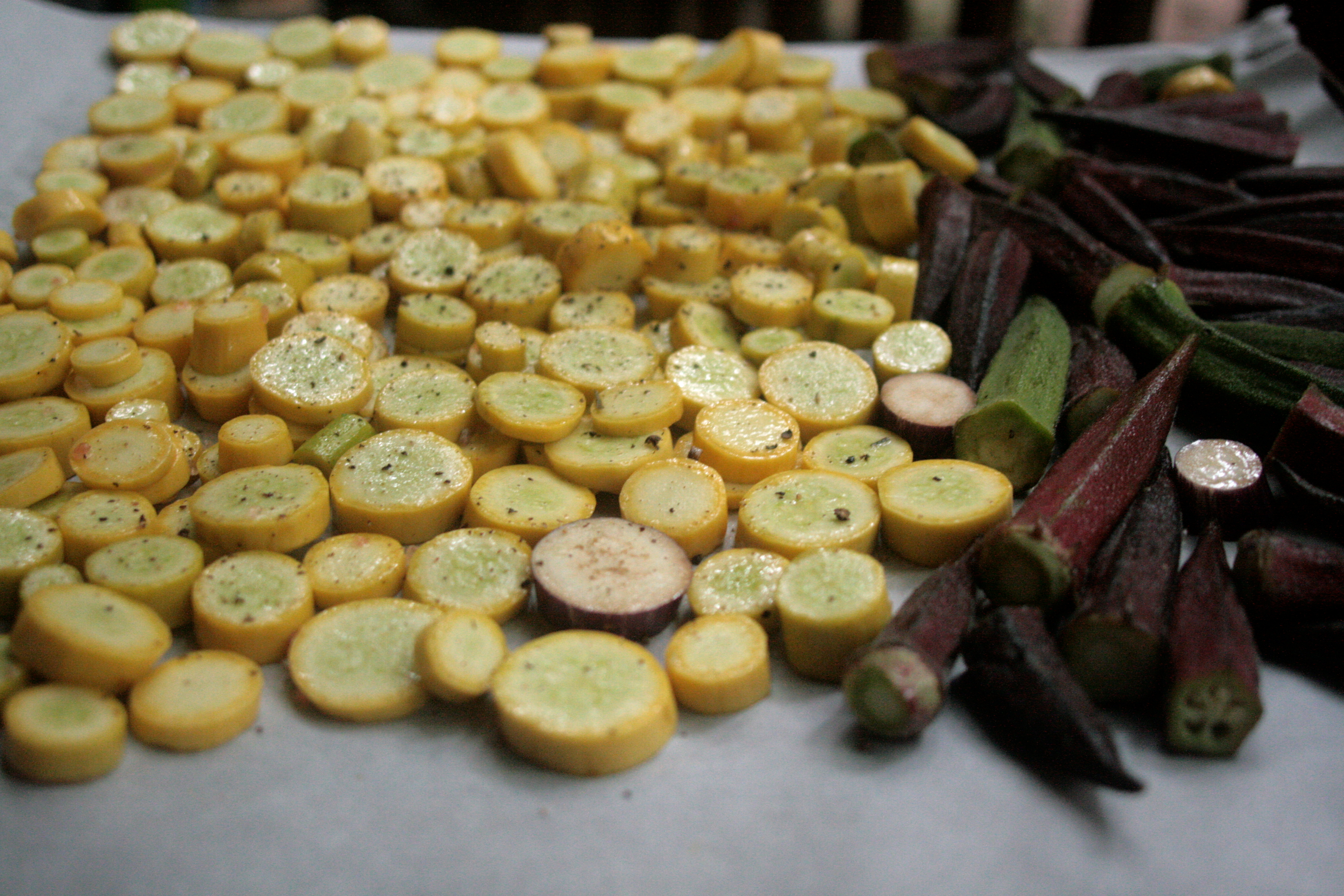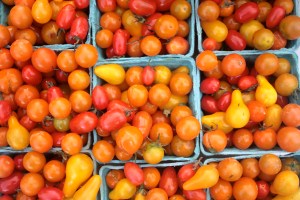 I went to Sunday Market in Astoria and couldn’t control myself… Every color of heirloom tomato, green zucchini, right from-the-dirt bright orange baby carrots, purple peppers, red beets, yellow beets, fresh cut basil, all different colored fingerling potatoes, long thin purple Asian eggplants, sweet walla walla onions, biting fresh arugula, yellow lemon cucumbers and fresh green pickling ones, too…
