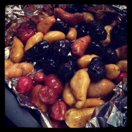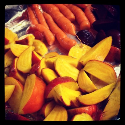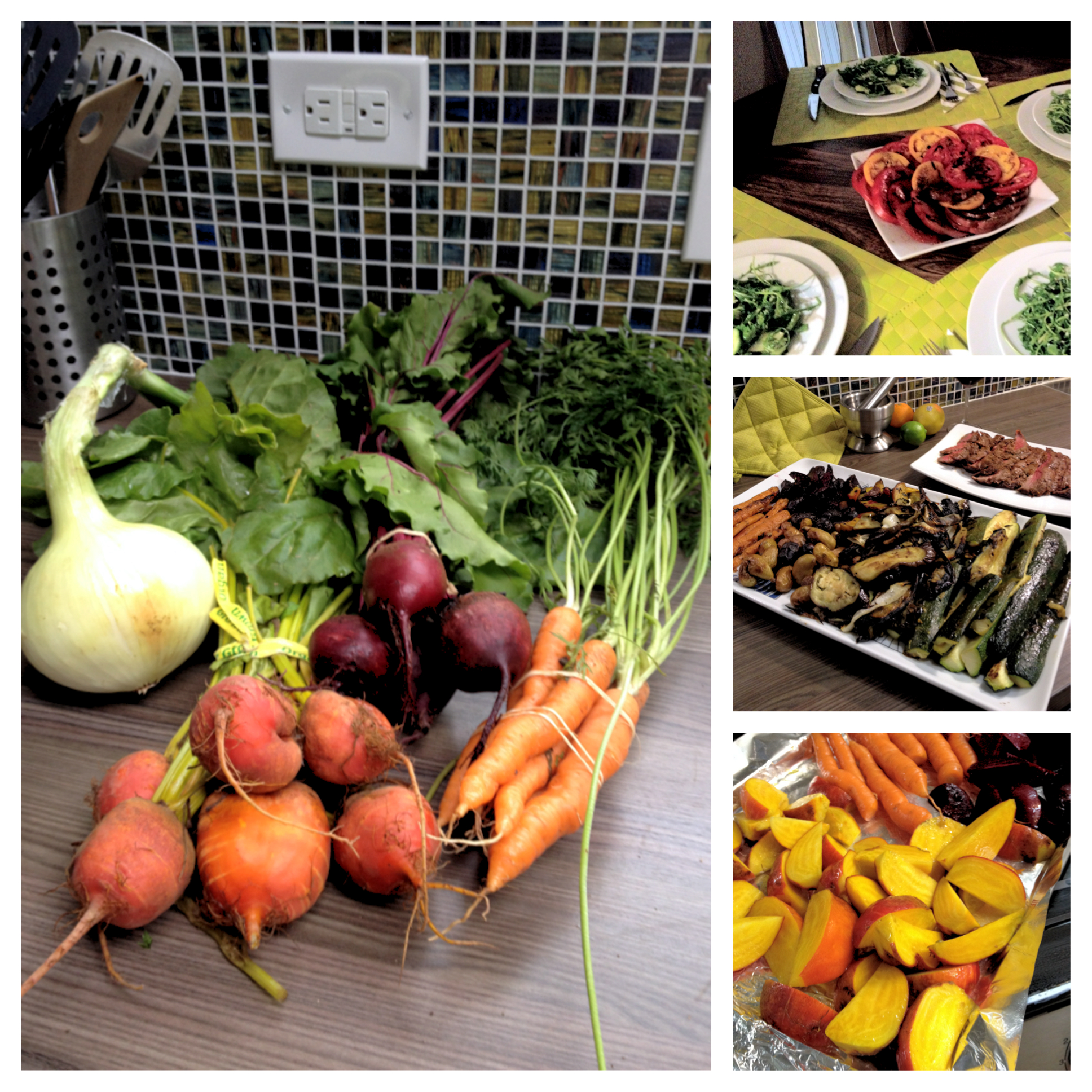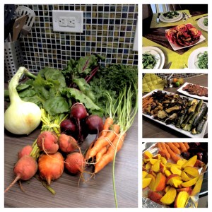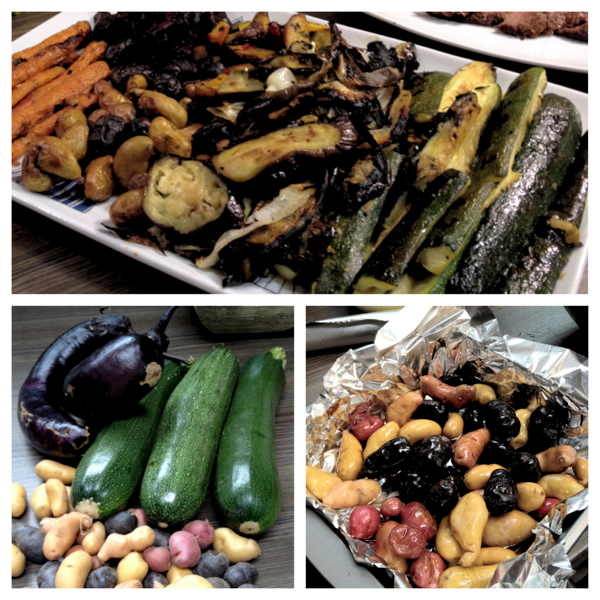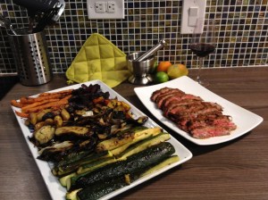 We managed to do it all…grilling the zucchini, eggplant, pepper and onions and roasting the potatoes, beets and carrots. All were tossed lightly in some olive oil and seasoned with kosher salt and pepper and a little fresh garlic and basil. By the way, my roasting expertise has to do with having a really good oven that has a convection bake setting and gets really hot (you need at least a true 400 degrees in a regular bake setting). You probably don’t have either in your not-quite-yet-gourmet kitchen.