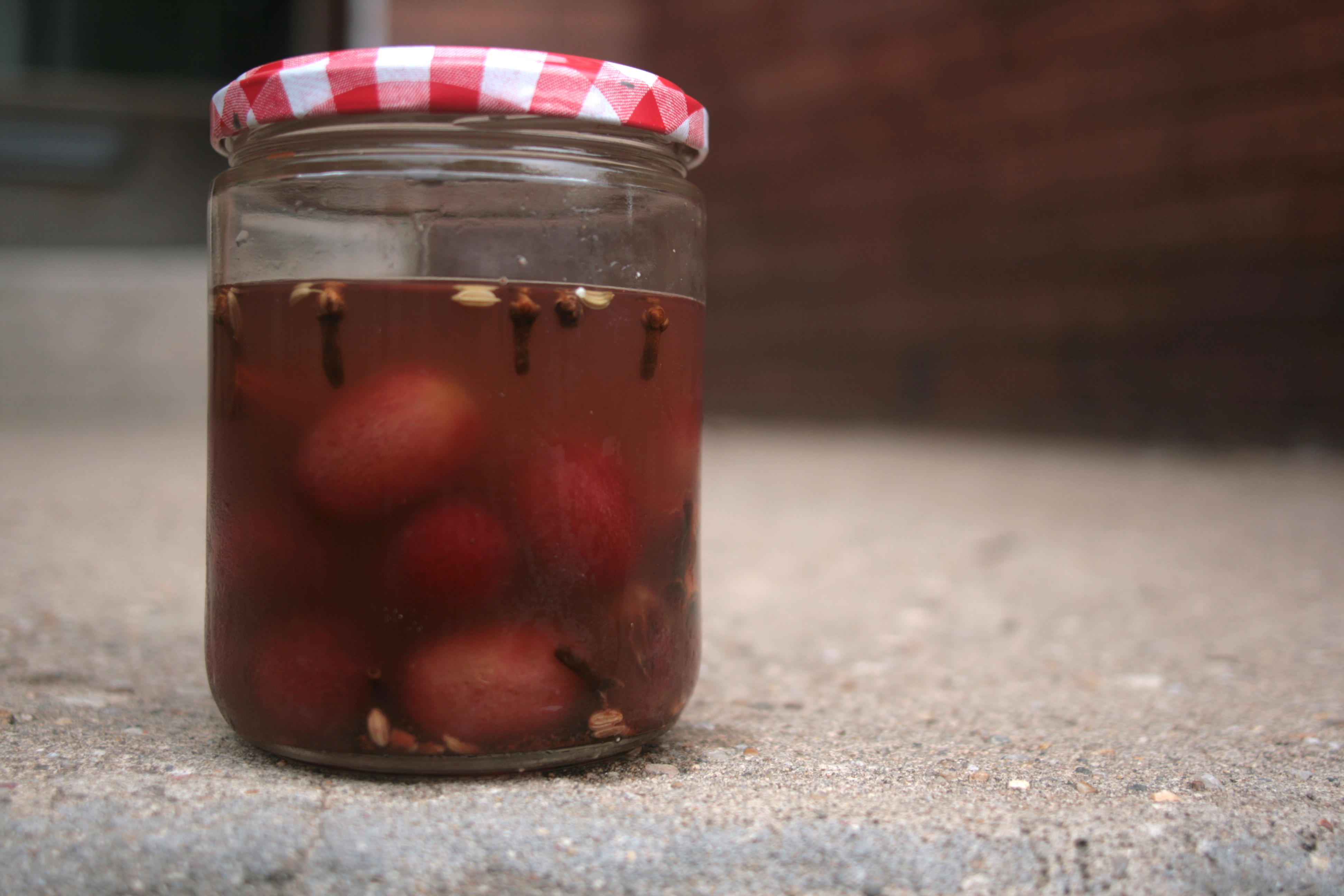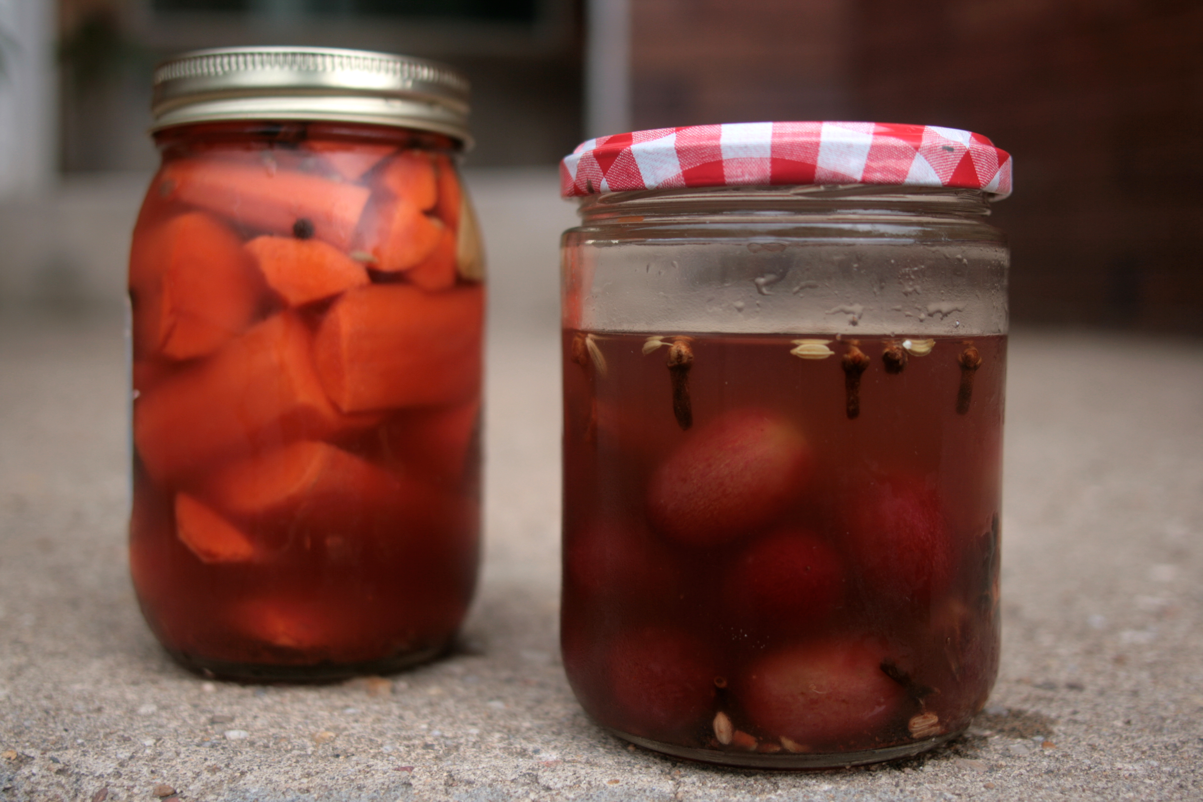 Add fresh grapes to pickling mixture and let sit. These make a great, zesty surprise in salads!