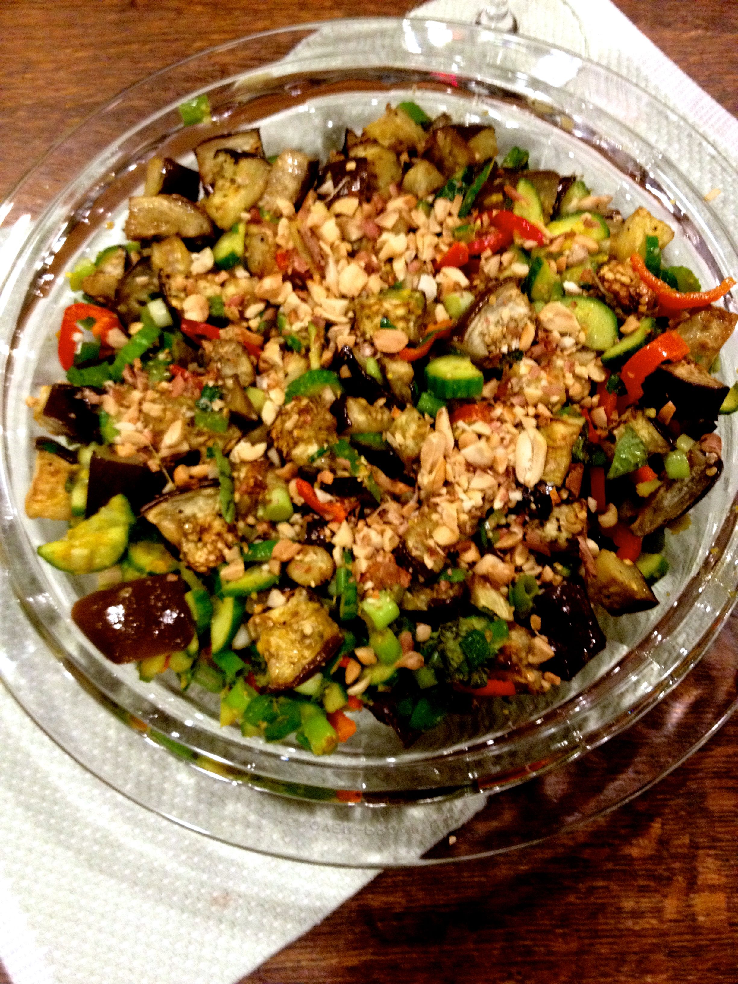 I made this recipe and the dressing was a little strong. I really was disappointed in the flavor and overall taste. I recommend using less jalapeño. I happened to have an eggplant that I was planning on roasting. I cut it up in cubes, mixed it up with a little oil and salt and pepper and roasted it in the oven on the convection bake setting at 375 degrees until the edges were browned and the eggplant was soft. I ended up mixing the eggplant with the dressed cucumber salad and added a little fresh basil. I topped it all with chopped roasted peanuts. Adding the eggplant to this salad saved the day and made a very substantial and tasty veggie side dish.