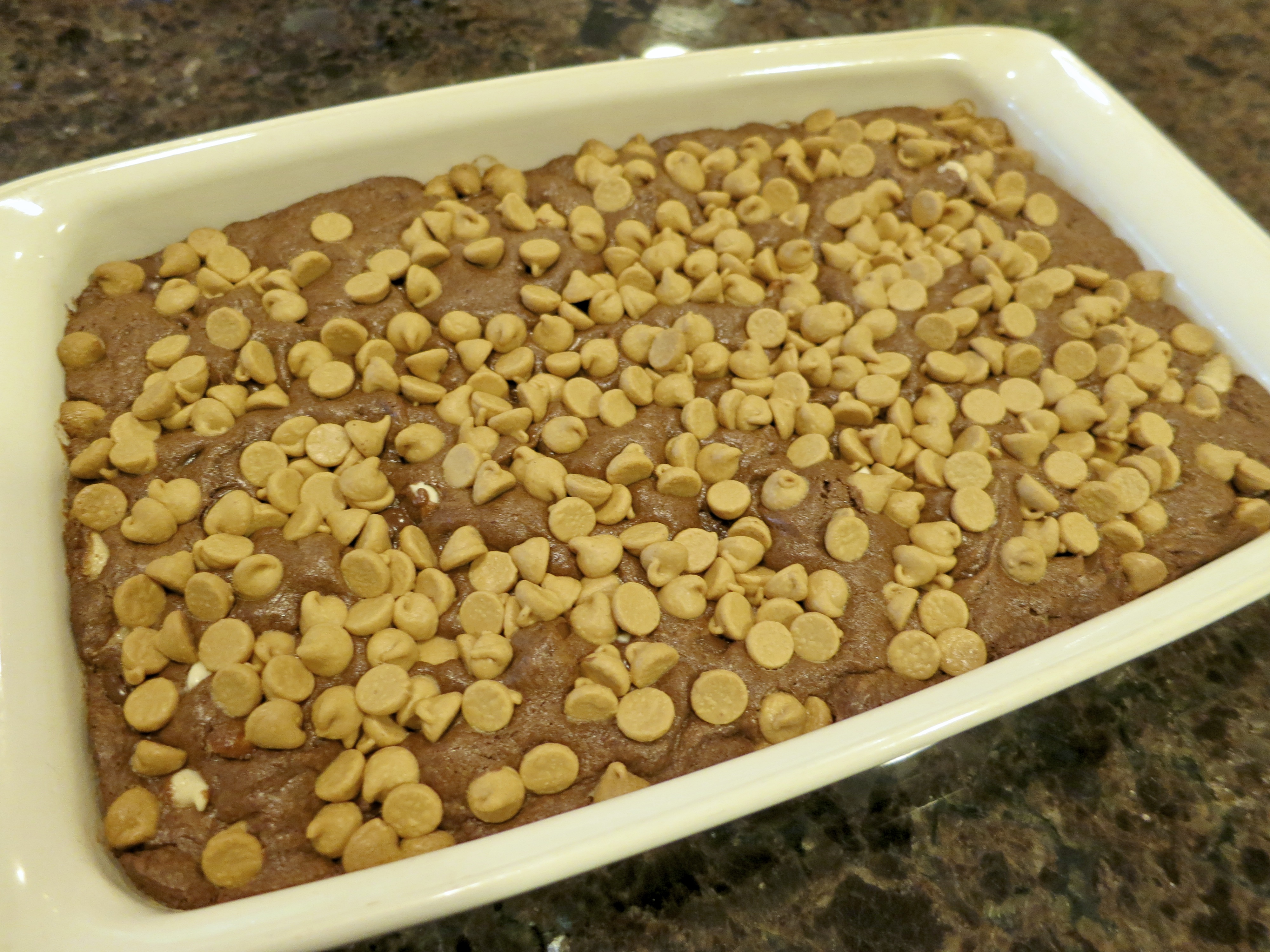 Sprinkle walnuts or peanut butter chips over top. If you would like to use both, cut the amount of each by ⅓ and sprinkle evenly over the top.