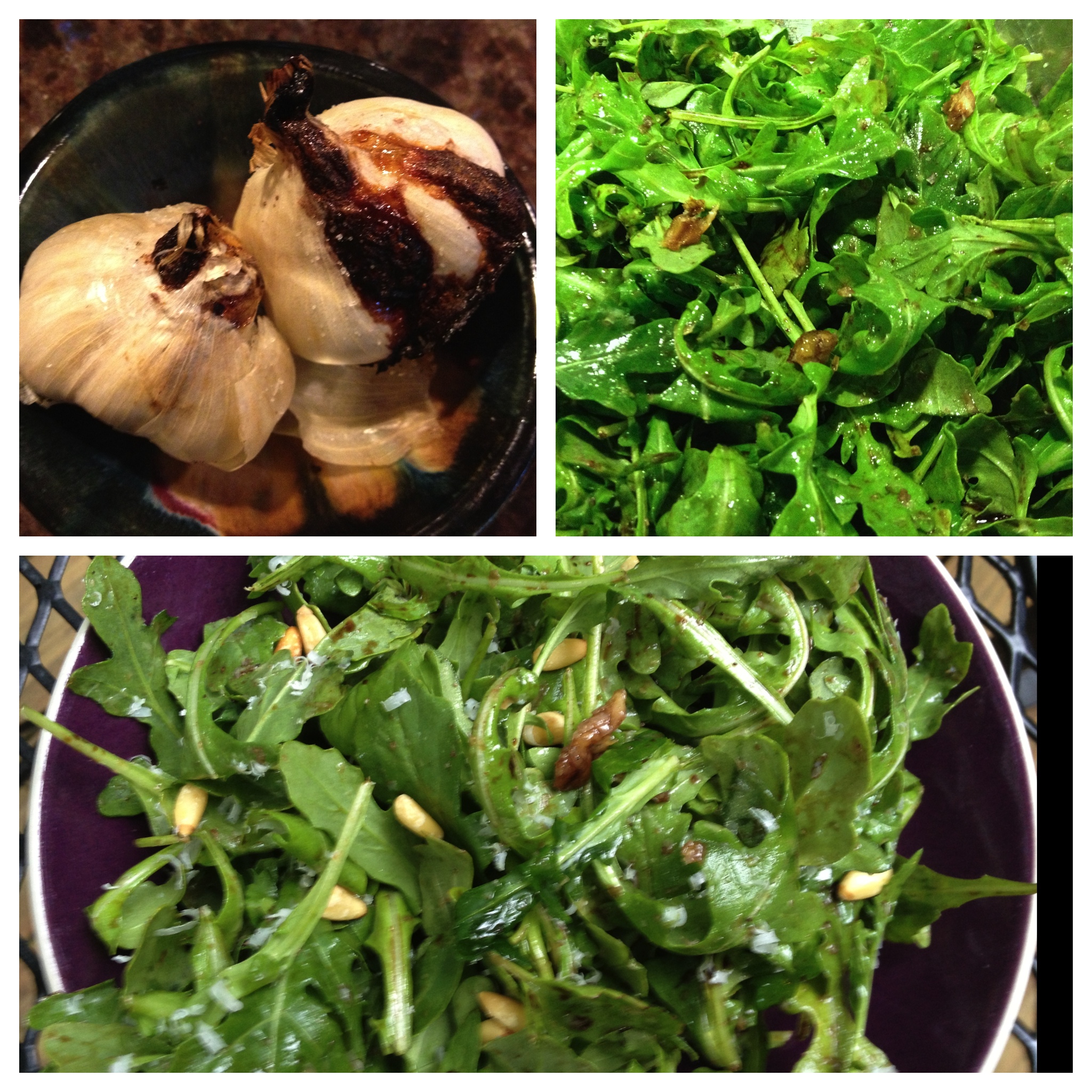 Don’t forget the roasted garlic. It is delicious as a spread for garlic bread mixed with a little butter, as a dip for fresh bread mixed with olive oil and a little basil pesto. Squeeze fresh from the clove onto an arugula salad with pine nuts and parmesan cheeses and a little oil and balsamic vinaigrette dressing for a sweet garlicky treat.