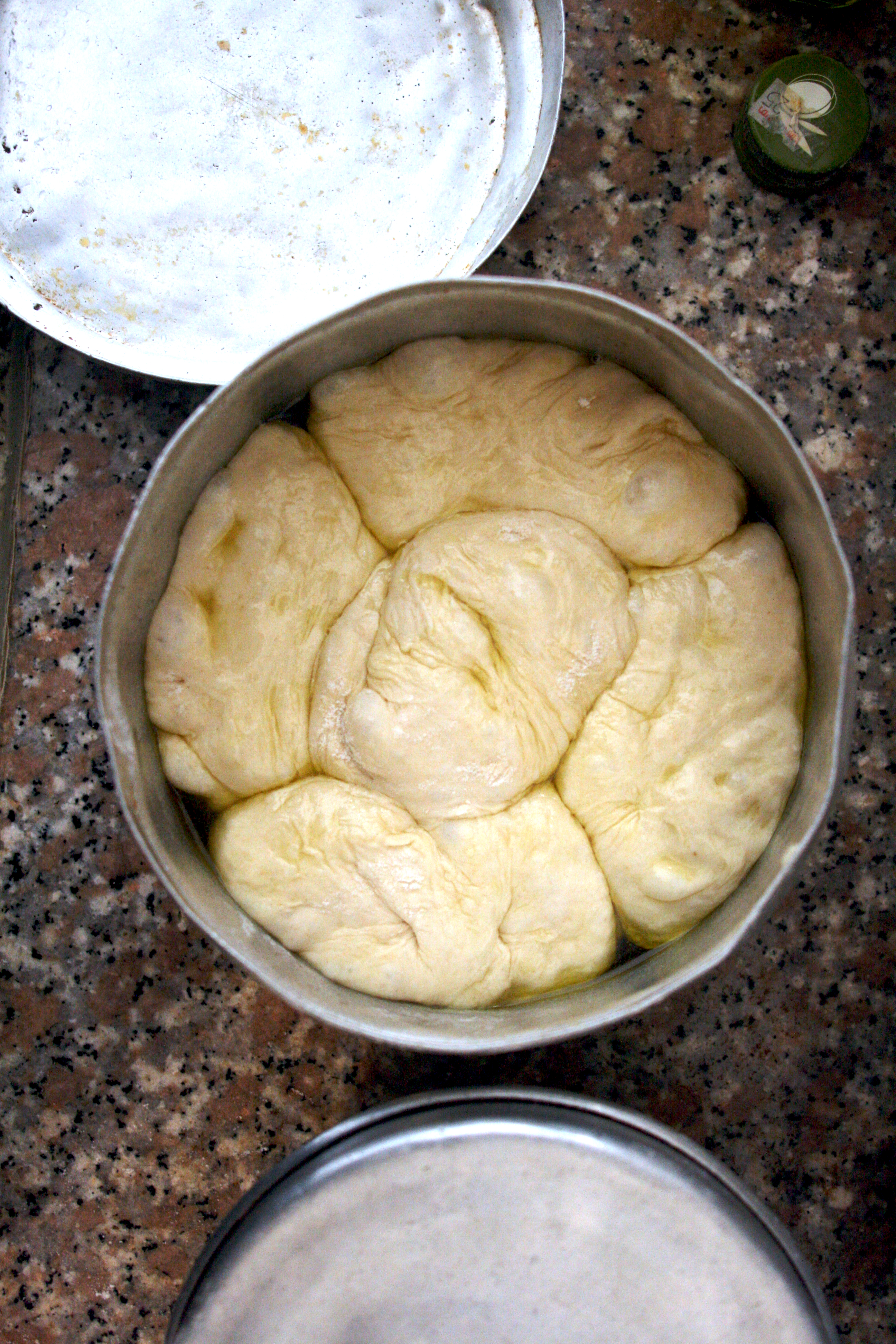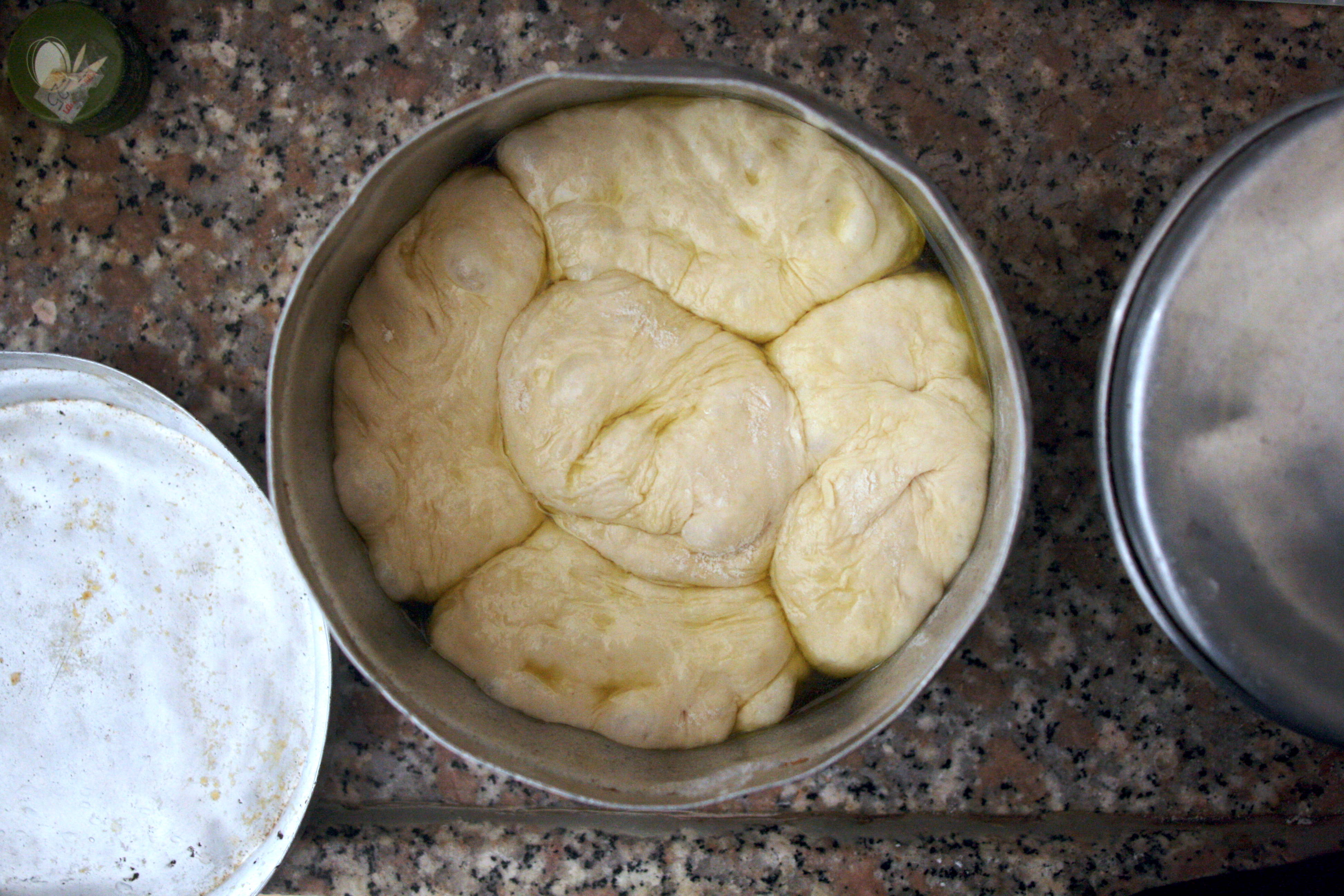 Kubaneh is a special Yemeni Shabbat bread. It is made in a metal tin over the stove. If you do not have one of these, you can use a steel baking pan or baking tin.