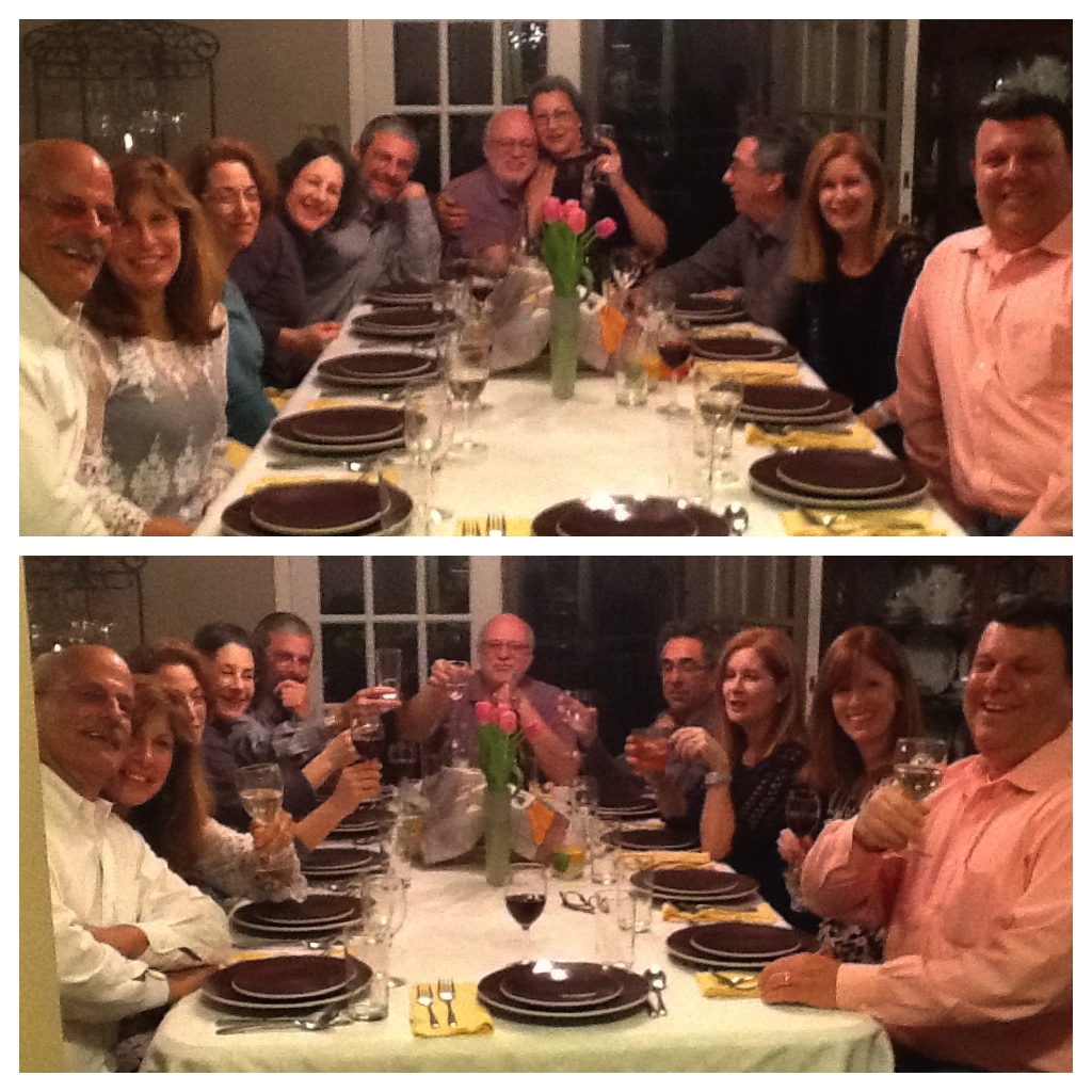 In the meantime, thanks for suggesting that I host a concurrent Bham/Israel Shabbat dinner. It turned out to be great fun and an idea worth repeating. We hosted the Birmingham parents who have children living in Israel while you hosted their kids eight hours earlier in Jerusalem. There were a few parents and kids missing at both of our tables, so we’ll have to plan a repeat. I apologize for the fuzzy pictures.