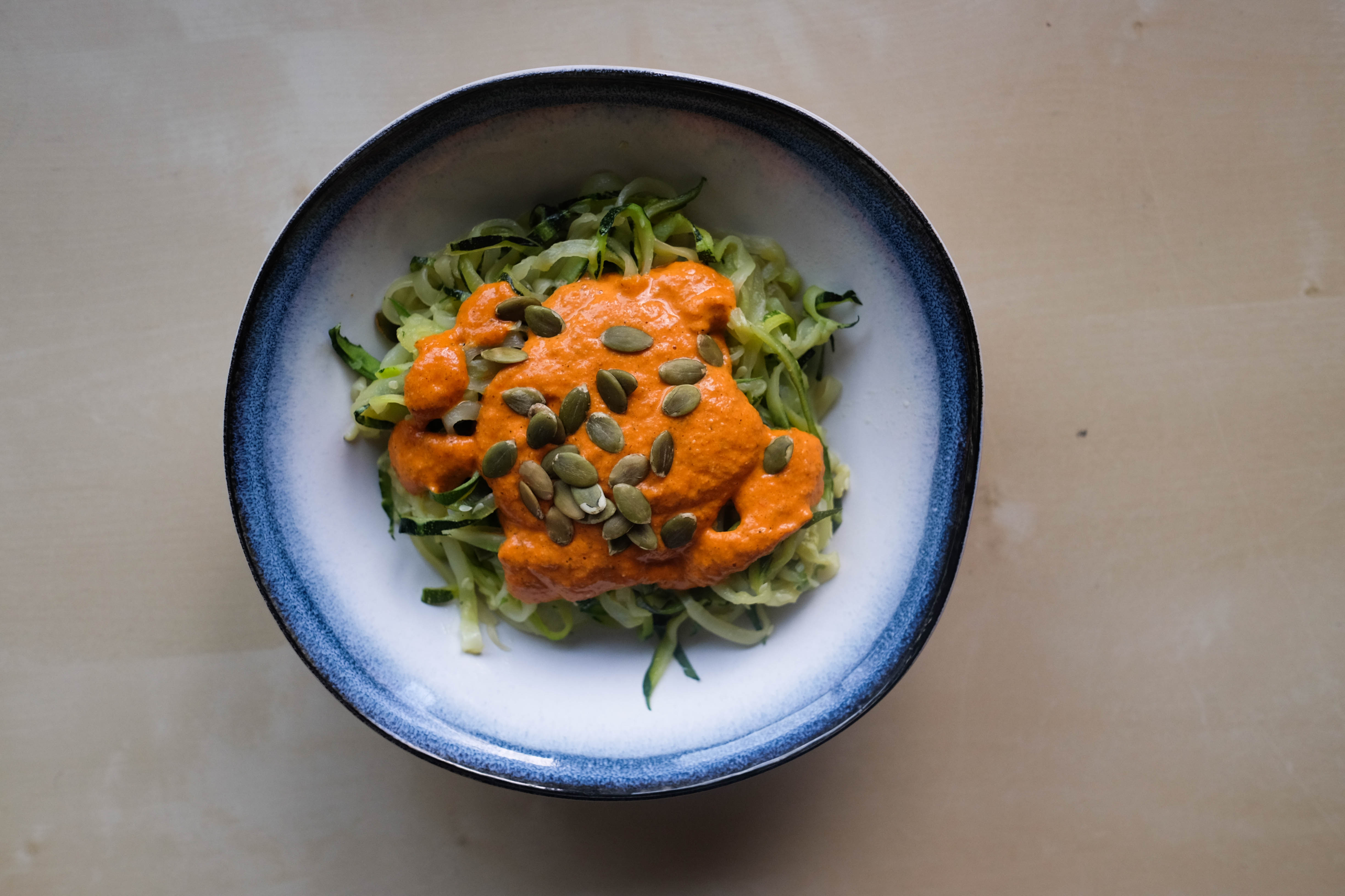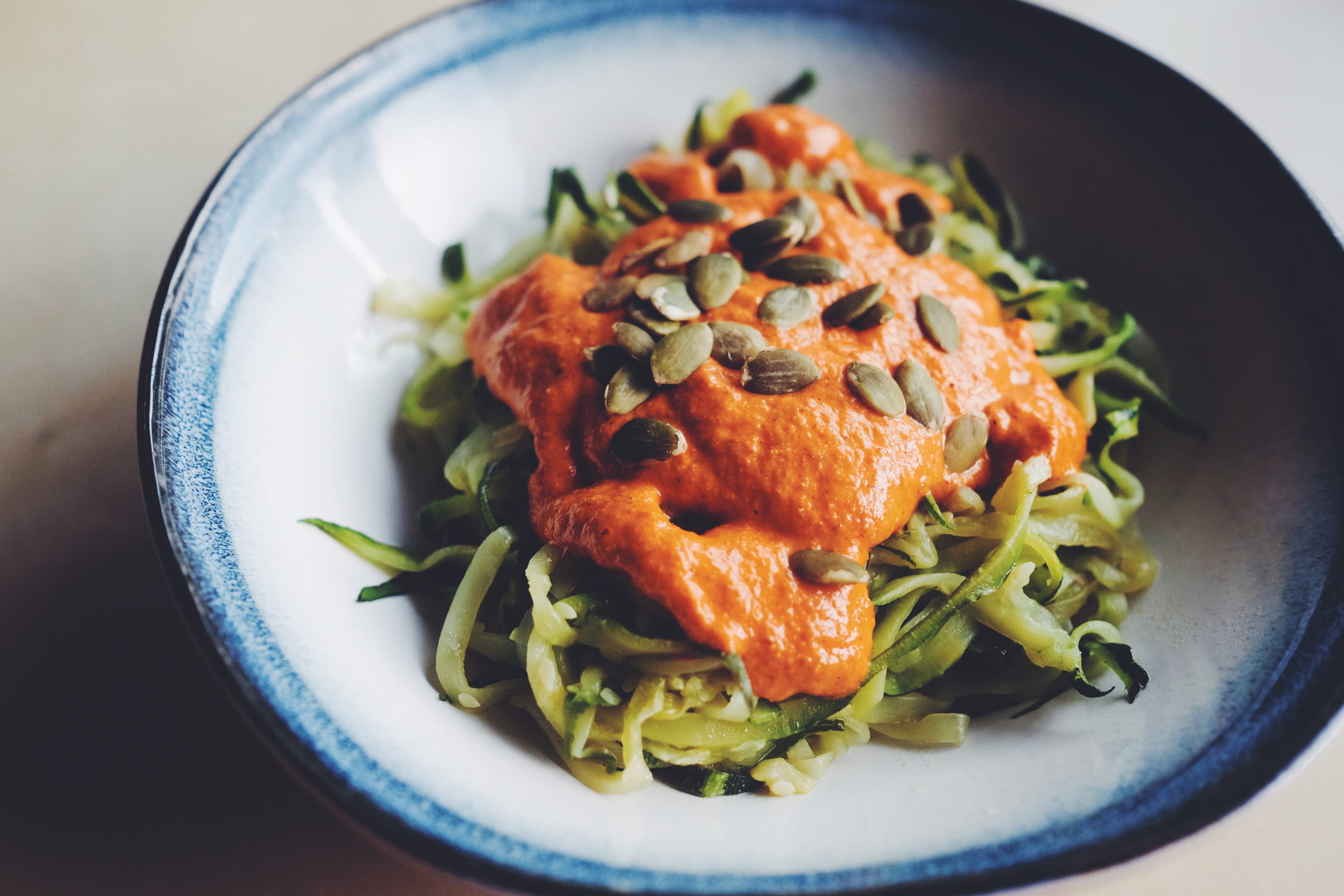 Zucchini Noodles with Creamy Roasted Red Pepper Sauce