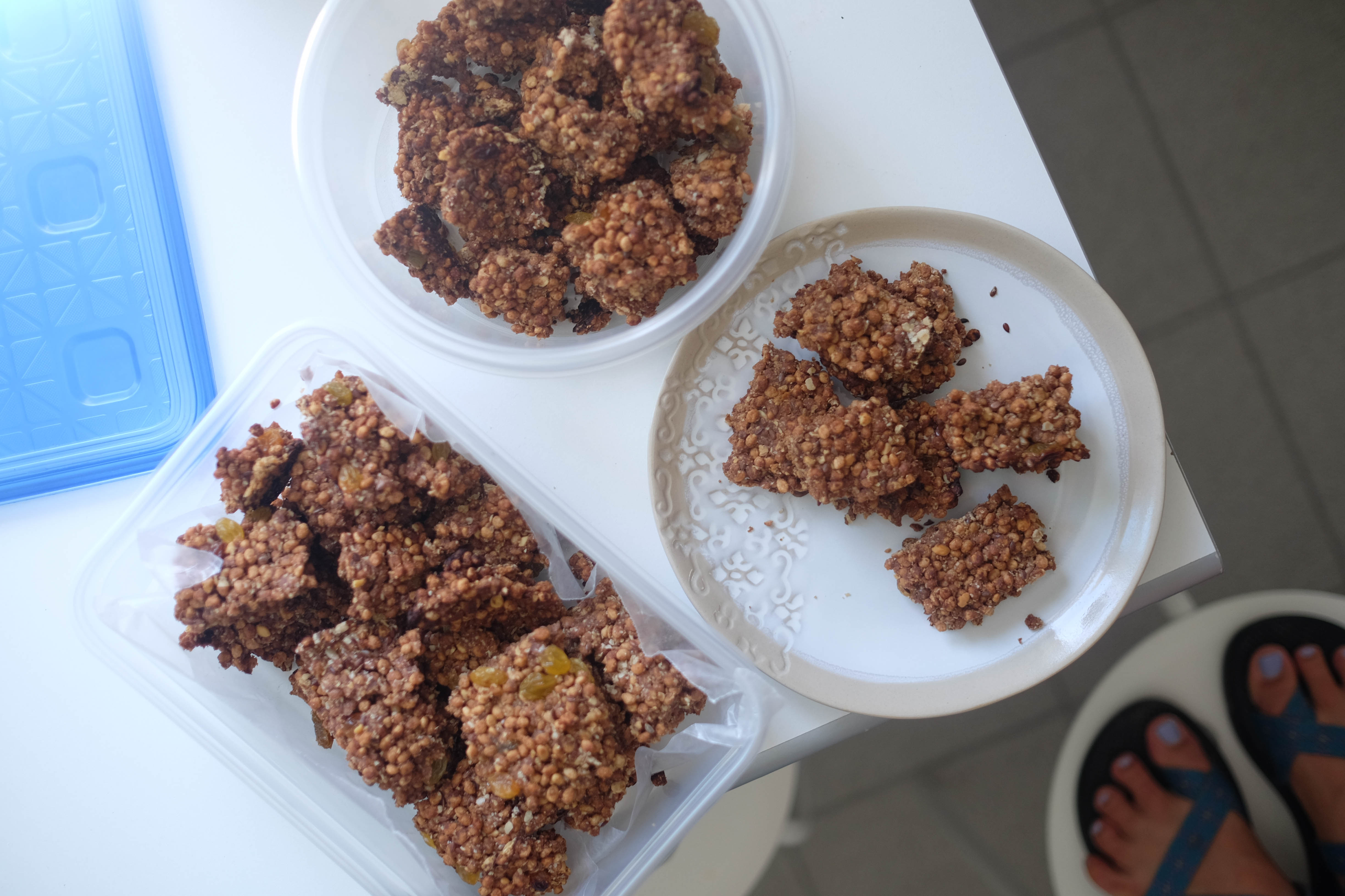 I brought these to my Creative Non Fiction class and they went over well. I like bringing snacks to class/everywhere. I like to share. But it’s hard to budget snacks for the people when I’m struggling to budget snacks for myself. I figured that if I used basic ingredients (sorry friends, no almond-cocoa-date truffles this week), I could keep things relatively affordable. I feel very lucky that this is something I don’t have to worry about (too much) on the reg. What a gift!
