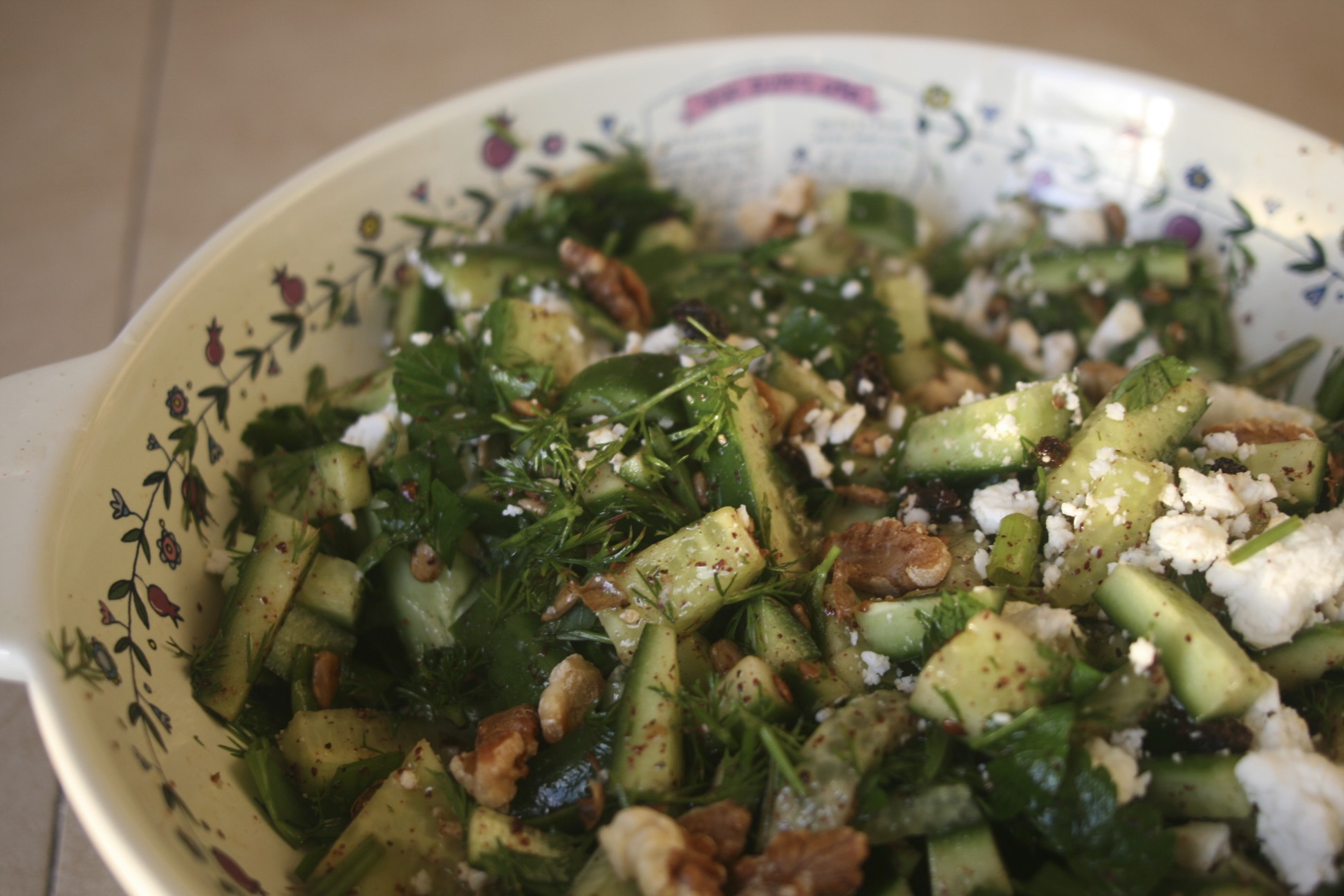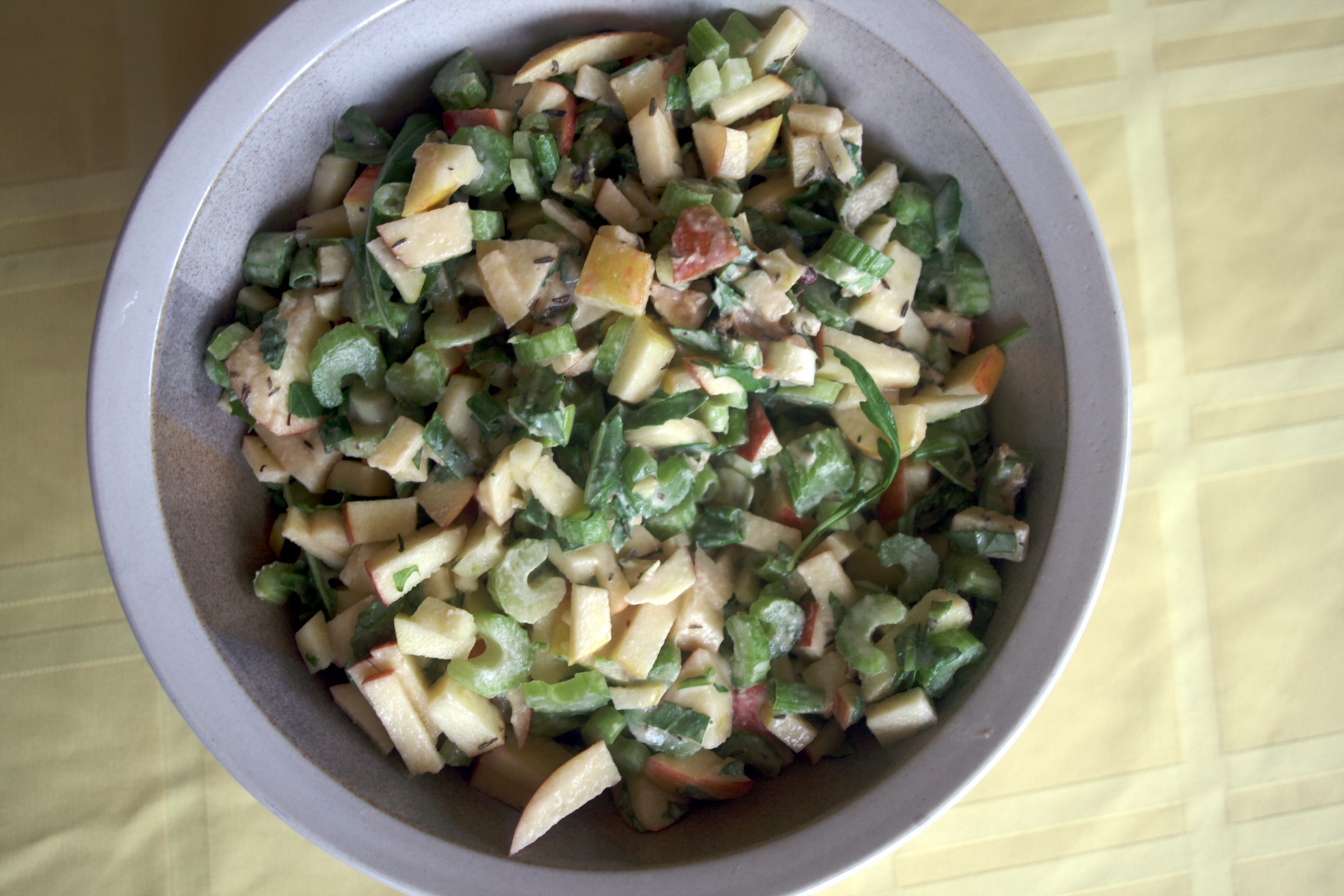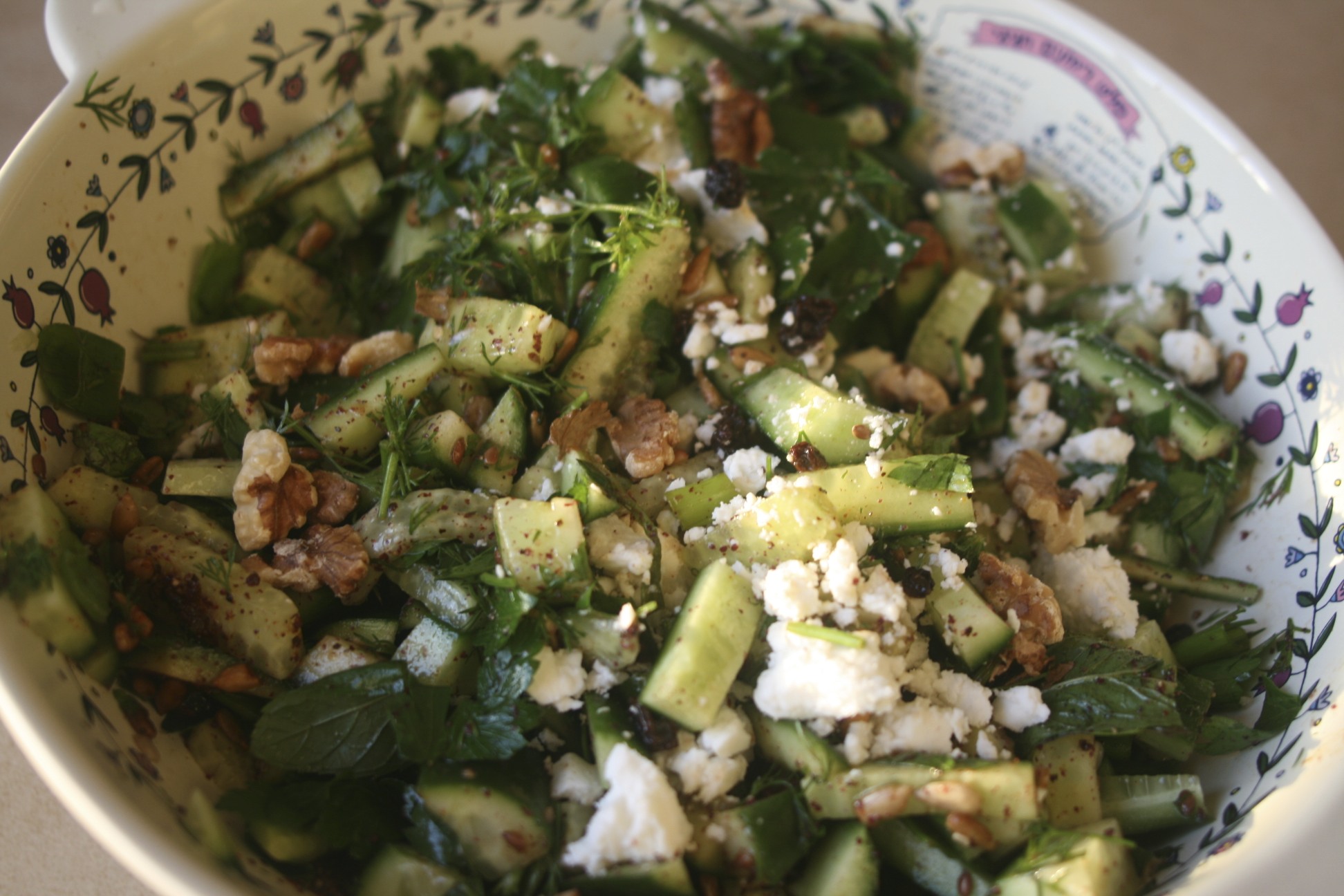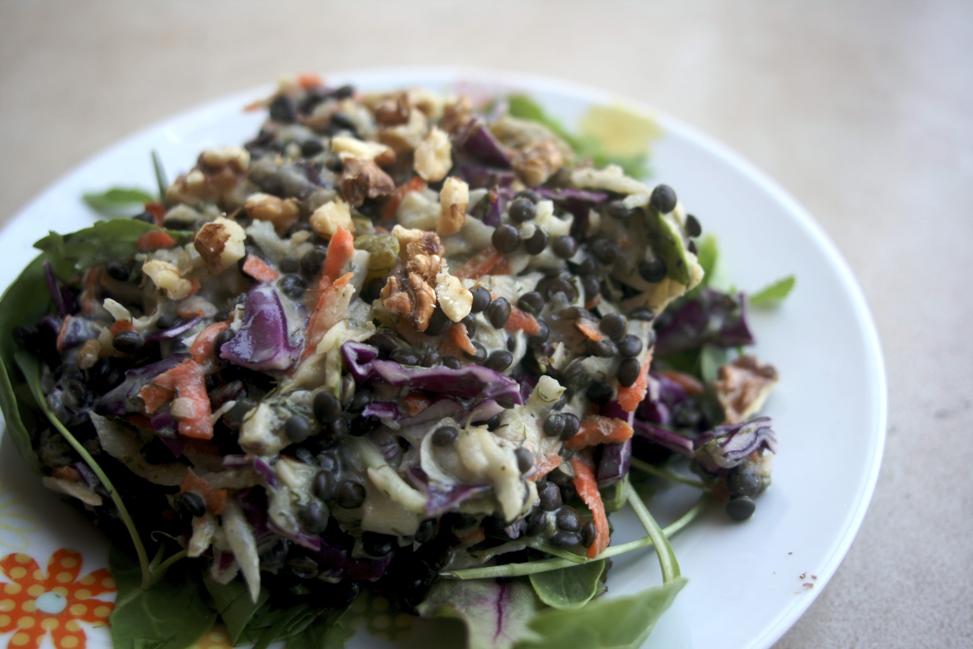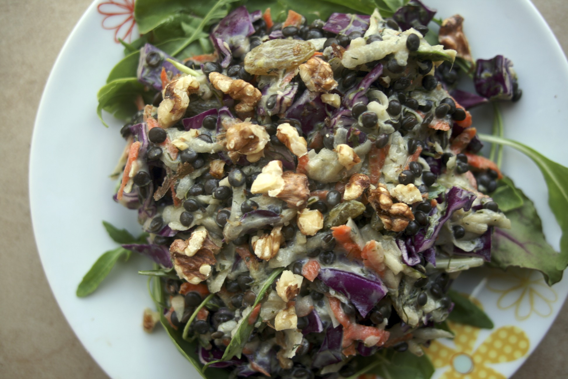 Add remaining ingredients to dandelion greens. Add dressing and toss thoroughly. Add salt and pepper to taste.